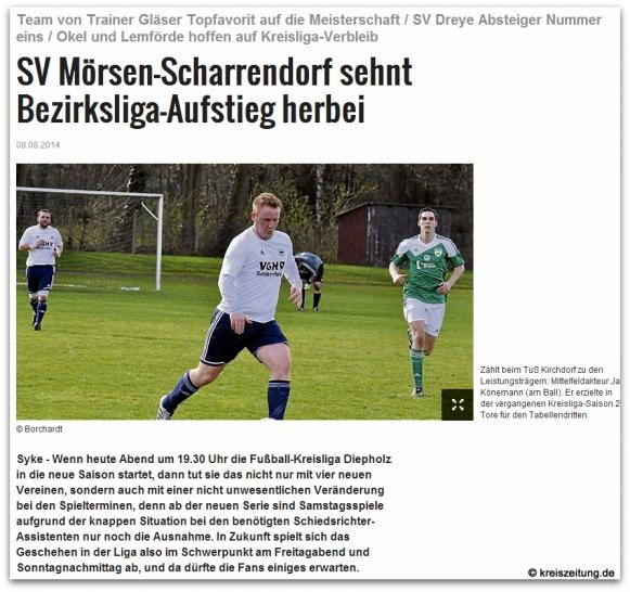 Vorbericht der Kreiszeitung auf die neue Kreisligasaison 2014/2014.