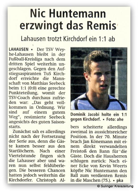 22. August: TSV Weyhe/Lahausen - TUS Kirchdorf 1:1