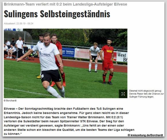 Sonntag, 22. September, 15.30 Uhr: STK Eilvese - TUS Sulingen 2:0