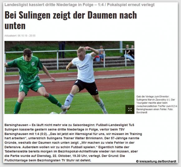 6. Oktober, 15.00 Uhr: TSV Barsinghausen - TUS Sulingen 4:1