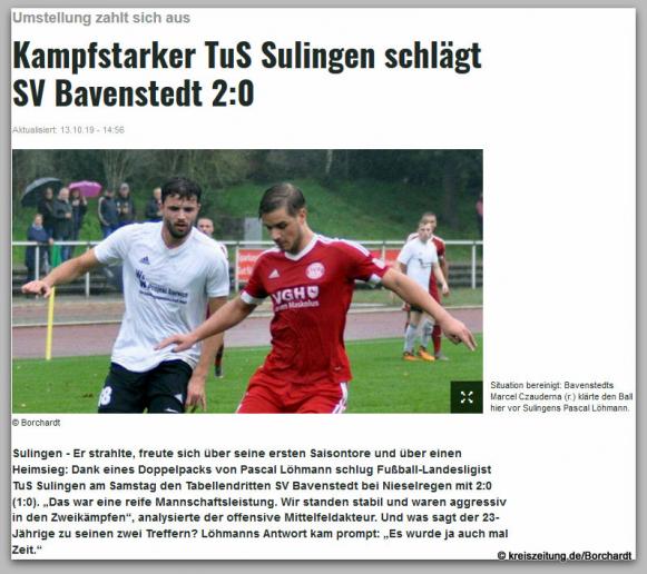 Samstag, 12. Oktober, 15.00 Uhr: TUS Sulingen - SV Bavenstedt 2:0