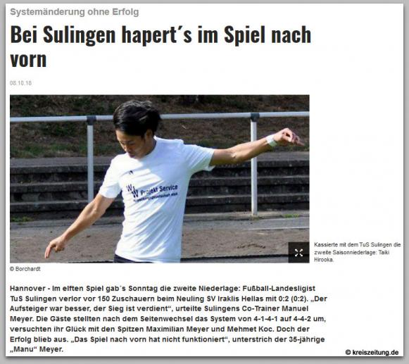 7. Oktober, 15.00 Uhr: SV Iraklis Hellas - TUS Sulingen 2:0