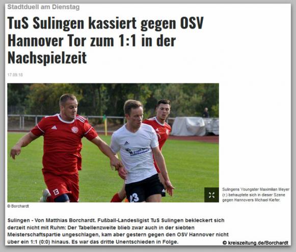 Sonntag, 16. September: TUS Sulingen - OSV Hannover 1:1
