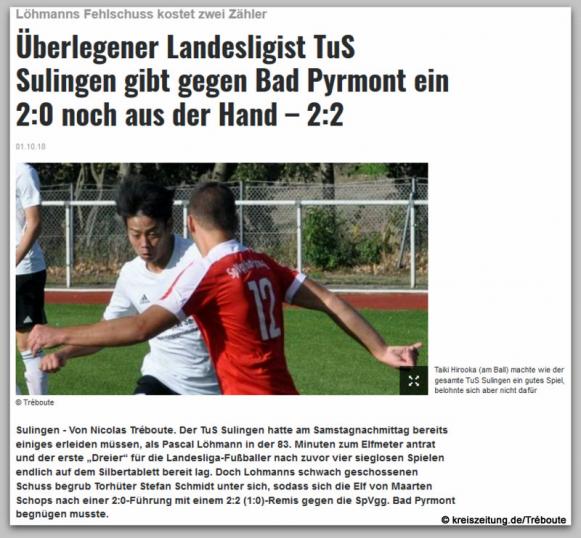 30. September 2018: TUS Sulingen - SpVgg Bad Pyrmont 2:2
