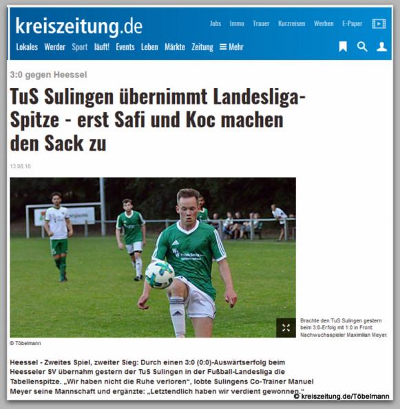 12. August 2018: Heesseler SV - TUS Sulingen 0:3