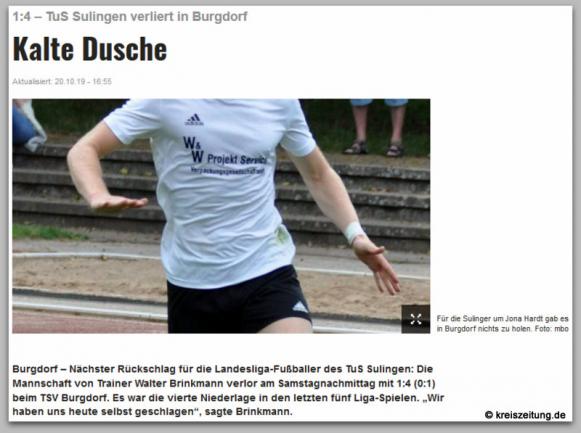 Samstag, 19. Oktober, 16.00 Uhr: TSV Burgdorf - TUS Sulingen 4:1