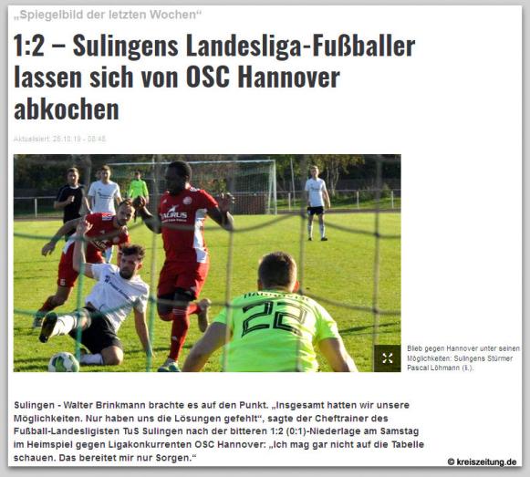 26. Oktober, 15.00 Uhr: TUS Sulingen - OSV Hannover 1:2