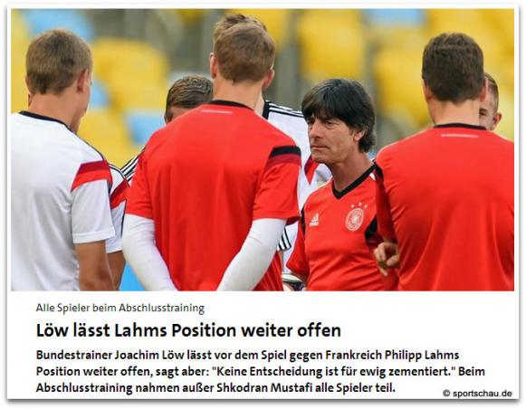 Nun ist es soweit. Viertelfinale gegen Frankreich. Tolles Wetter in ganz Deutschland. Nun hoffen alle auf ein tolles Spiel gegen Frankreich und einen guten Ausgang für Deutschland. Halbfinale wäre klasse. Möge der Bessere gewinnen.