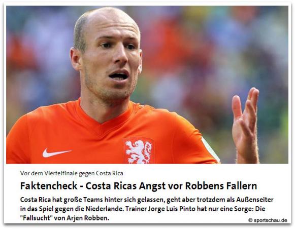 Ist Arnje Robben auch von Costa Rica nicht zu stoppen oder schaffen die Ricos die große Sensation und ziehen in das Halbfinale der Fussball Weltmeisterschaft gegen Argentinien ein. Man darf gespannt sein.