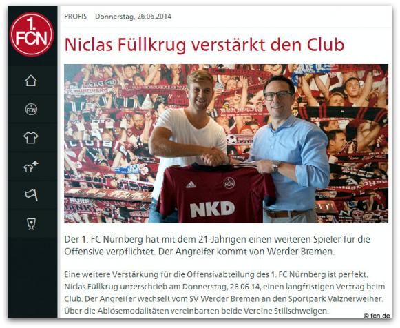 26. Juni: Niclas Füllkrug wechselt zum 1. FC Nürnberg - Tschüß " Lücke "