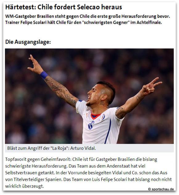 Samstag, 28. Juni, 18.00 Uhr: WM Achtelfinale Brasilien - Chile 4:3 n.E.