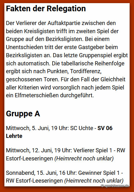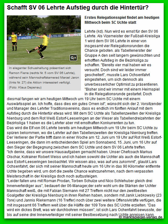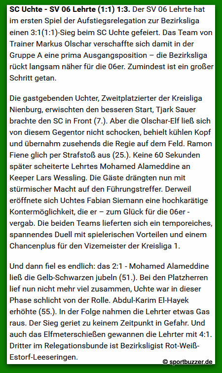 5. Juni 2019, Bezirksligarelegation: SC Uchte - SV 06 Lehrte 1:3