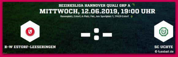 Mittwoch, 12. Juni 2019, 19.00 Uhr:RW Estorf-Leeseringen - SC Uchte 1:0