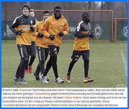 Zu werderworldinfo auf die Grafik klicken Auch im Werder Training gehts manchmal ganz schön zur Sache. Das ist wichtig für die Wettkampfhärte. Da bleiben manchmal auch kleine Verletzungen wie am Dienstag der Mittelhandbruch von Theodor Gebre Selassie nicht aus. Da ist ein gut aufgestellter Kader wichtig, um die gesteckten Ziele zu erreichen.