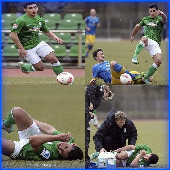 Zur Fotostrecke auf die Grafik klicken Özkan bekam kurz vor der Halbzeit im Testspiel gegen Eintracht Braunschweig einen üblen Schlag auf die rechte Wade. Deshalb blieb er vorsichtshalber nach der Halbzeit in der Kabine. Auf Wadenbeinverletzungen hat Özkan nun gar keinen " Bock " mehr. Aber in der Kabine wurde gut gekühlt. So soll es am Mittwoch schon wieder weiter gehen mit dem Training. Die Bremer Jungprofis in der auch Stürmer Joseph Akpala Spielpraxis bekam machten ein gutes Spiel gegen den Tabellenführer der 2. Bundesliga und siegten am Ende durch Tore von Dennis Wegner und Joseph Akpala verdient mit 2:0.
