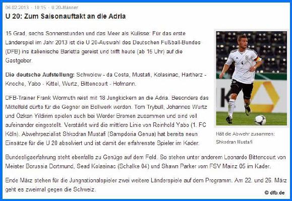 Zum Bericht auf dfb.de auf die Grafik klicken 15 Grad, Sonnenschein & Meer. Özkan Yildirim ist erstmals im Kader der deutschen U20 nach seinem Comeback und weilt derweil an der italienischen Adria. Sie machen dort aber keinen Urlaub sondern gehen ihrer Leidenschaft nach: " Fußball spielen ". Ziel ist ein Sieg gegen die U20 von Italien. Letztes Jahr EM Halbfinale gegen Italien ... da war doch was ...