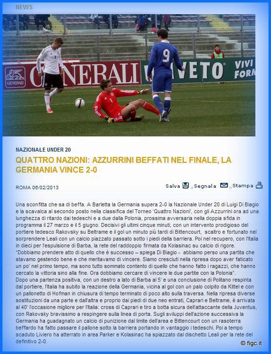 6.02: U20 Italia: Zero Germania: Due "Moltissimo"