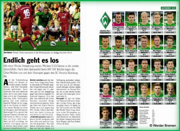 Erfolgreicher Rückrundenstart: Werder Bremen II Die jüngste Mannschaft der Regionalliga Nord, Werder Bremen II, will in der Rückrunde nochmal angreifen