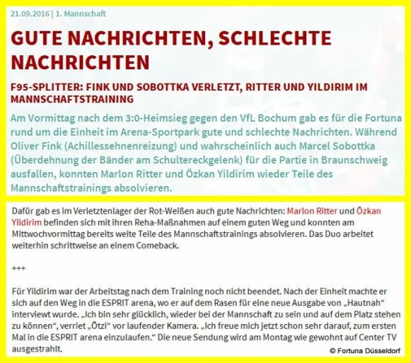7. August: Bericht auf F95.de - Gute Besserung Özkan