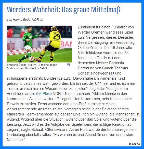 Zum Bericht von ndr.de auf die Grafik klicken Feierte im Spiel gegen den Deutschen Meister Borussia Dortmund sein Bundesligadebüt: Özkan Yildirim - SV Werder Bremen