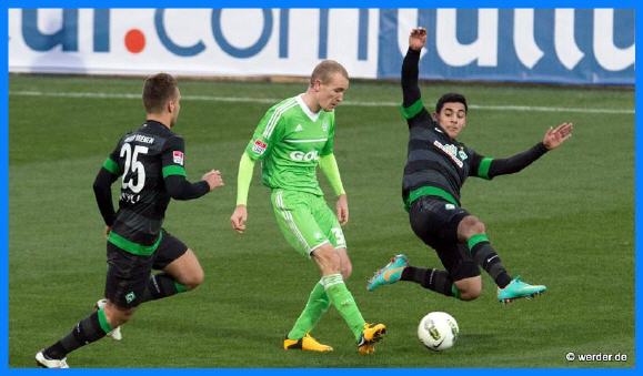 Zur Fotoserie auf die Grafik klicken Konnte im Endspiel des Tuttur-Cups 2013 gegen den VfL Wolfsburg auch kämpferisch überzeugen: Özkan Yildirim (rechts im Bild). Eine ausführliche Videozusammenfassung vom Spiel gibt es auf Werder.TV.