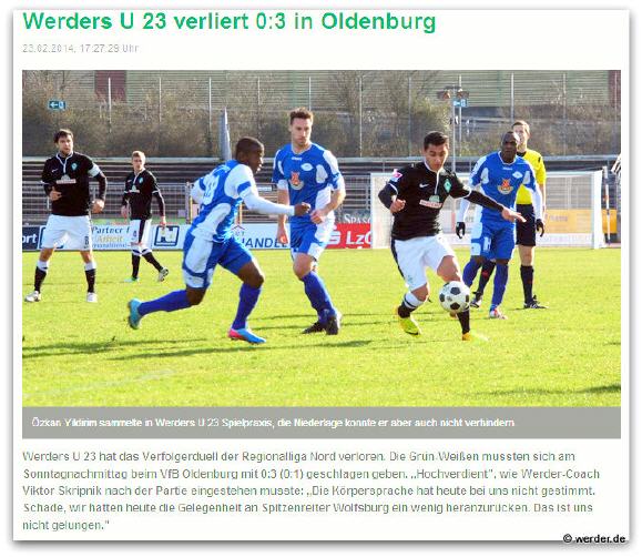 Zum VfB-Liveticker auf die Grafik klicken SV Werder Bremen II tritt beim Derby in Oldenburg mit den Nachwuchsprofis Özkan Yildirim und Levent Aycicek an. Die beiden Techniker stehen damit erstmals nach dem 13. Juni 2010 (U17 Punktspiel in Weyhe) wieder in einem Pflichtspiel von Werder Bremen gemeinsam auf dem Platz.