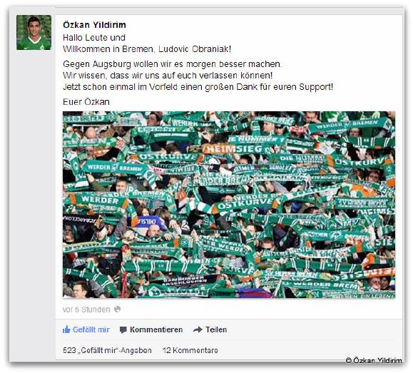 Zu Özkans Facebookseite auf die Grafik klicken Die Werder Fans und die vielen polnischen Mitarbeiter rund um Bremen freuen sich auf den Bremer Neuzugang Ludovic Obraniak.