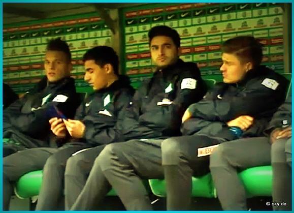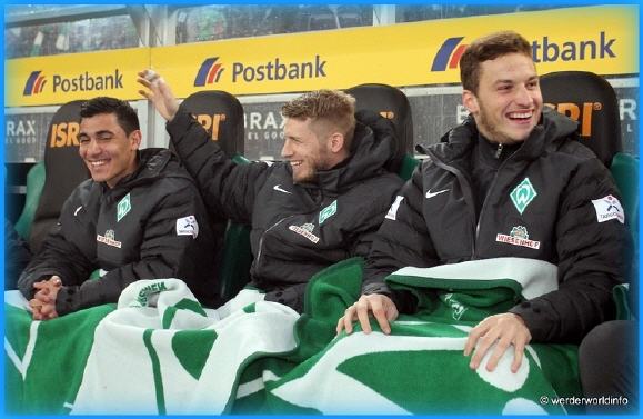Zum Kreiszeitungbericht auf die Grafik klicken Humor ist, wenn man trotzdem lacht: Özkan Yildirim, Aaron Hunt und Marko Arnautovic beim Spiel in Mönchengladbach auf der Werderbank.
