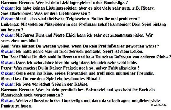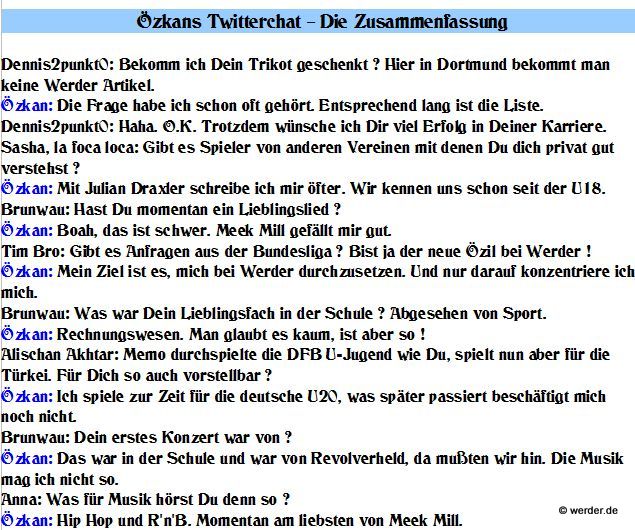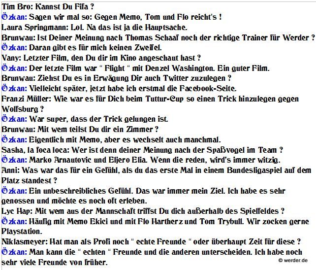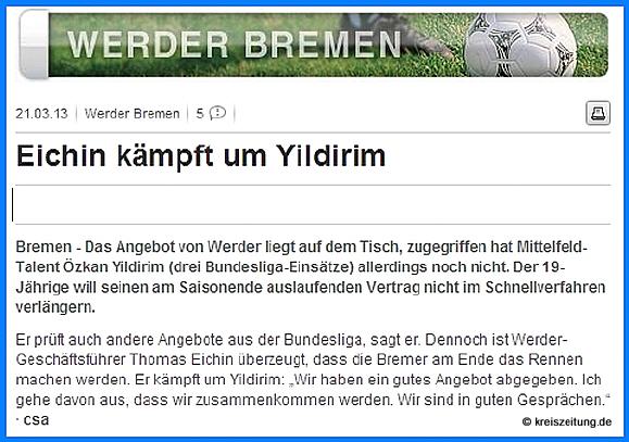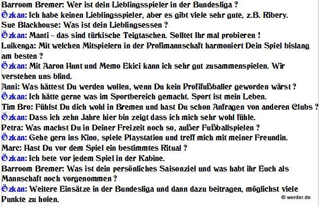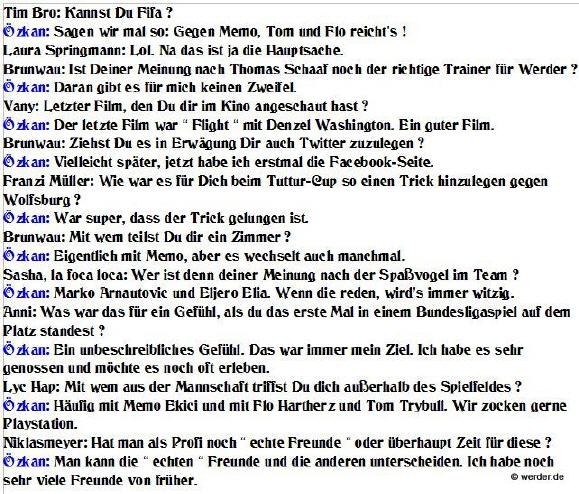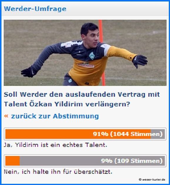 Zum Kreiszeitung-Bericht auf die Grafik klicken Özkan saß gegen Fürth zum vierten Mal in Folge 90 Minuten auf der Werder Bank. Mit dabei: Marko Arnautovic, Mehmet Ekici und Sebastian Prödl. Dabei würde er doch viel lieber auf dem Platz " Alarm " machen. Kommt Zeit, kommt Rat ...