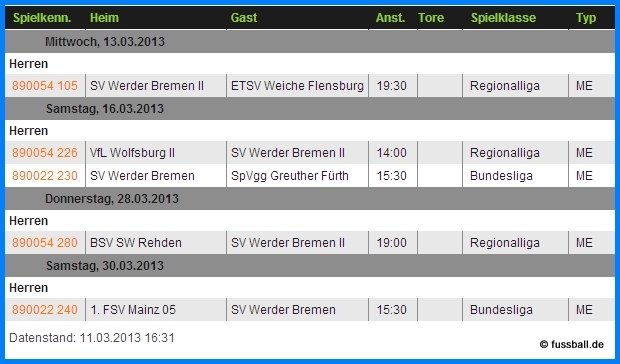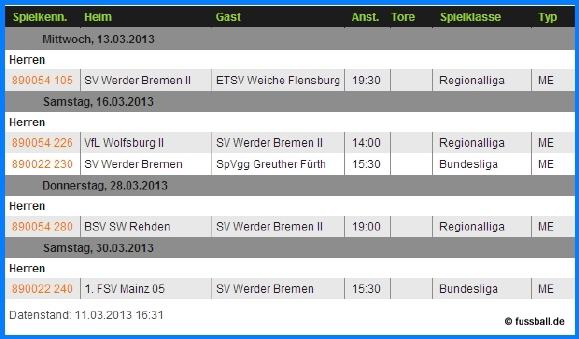 28.März 2013: BSV Rehden - SV Werder Bremen II 2:2