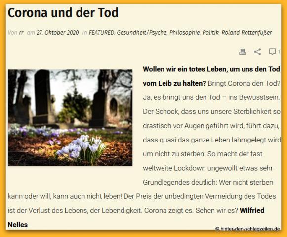 24. März 2020: Kollektiver Selbstmord wegen Corona-Krise - aus Angst vor dem Tod ?