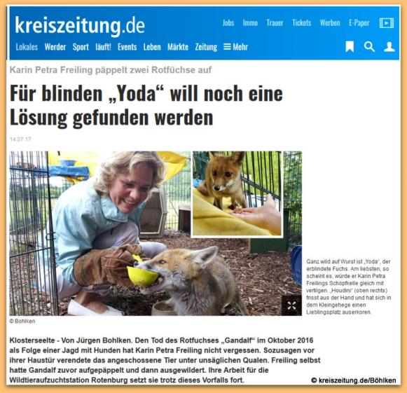 Dezember 2017: Bericht auf Pro Fuchs Ostfriesland e.V.