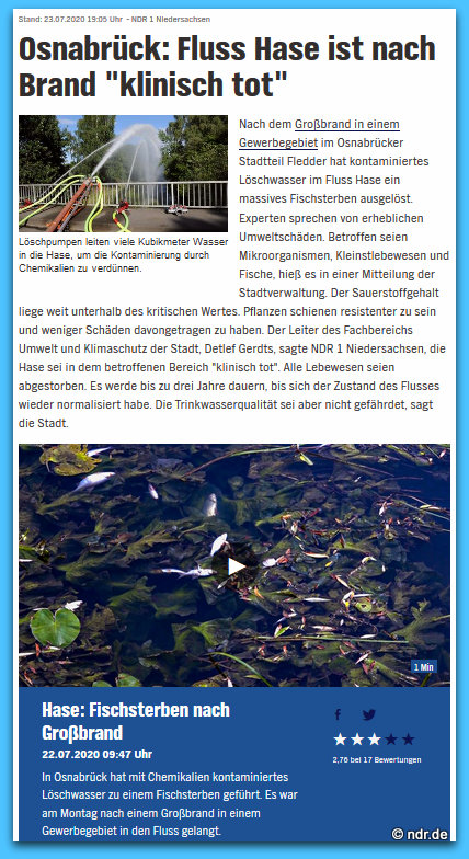 23. Juli 2020: Fluss Hase ist klinisch tot
