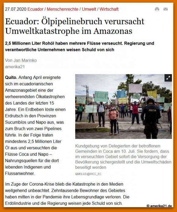 27. Juli 2020: Umweltkatastrophe in Ecuador