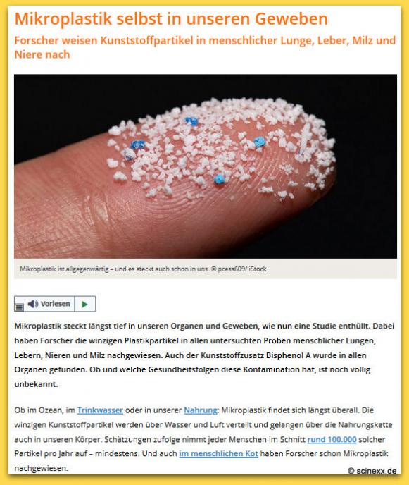 18. August 2020: Mikroplastik selbst in unseren Geweben