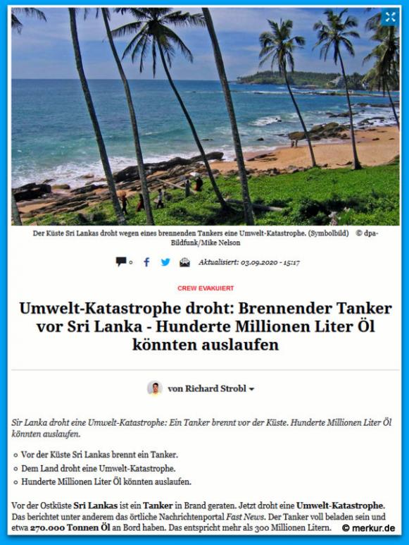 3. September 2020: Umweltkatastrophe vor Sri Lanka