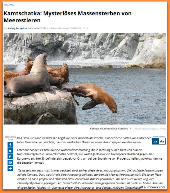 6. Oktober 2020: Kamtschatka - Mysteriöses Massensterben von Meerestieren
