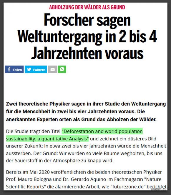 21. Januar 2021: Forscher sagen Weltuntergang durch Waldabholzung voraus