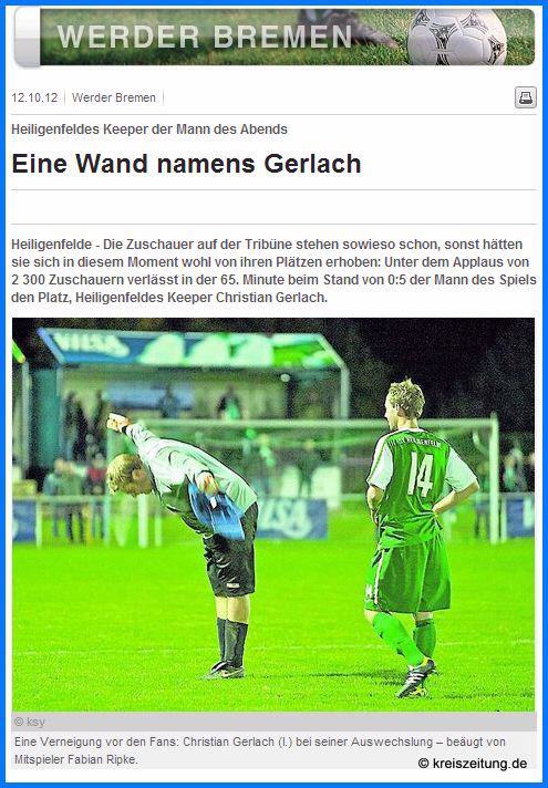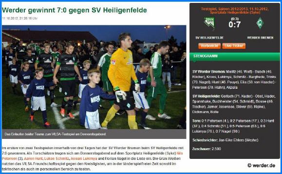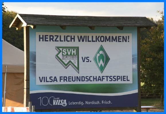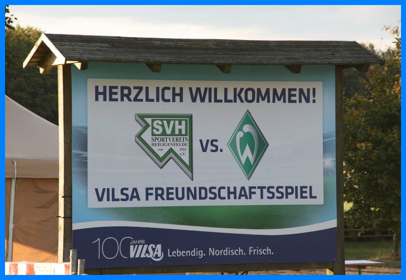 Am 11. Oktober 2012 gastierte die Mannschaft von Werder Bremen zum Vilsa Freundschaftsspiel beim Tabellenführer der Kreisliga Diepholz SV Heiligenfelde. Gesamtlänge des Videos: 2 Stunden - 38 Minuten - 8 Sekunden Auf dem Video unter anderem eines der letzten Interviews vom damaligen Werder-Geschäftsführer Klaus Allofs, das komplette Spiel mit allen Werder Toren sowie der noch zahlreicheren Glanzparaden der Heiligenfelder Torwartlegenden Christian Gerlach und Patrick Kuder. " Kuuuuuuuuuuder, Kuuuuuuuuuuder ... " Dieses Video ist ein Muß für jeden Heiligenfelde-Fan und vielleicht auch für ein paar Werder-Fans.